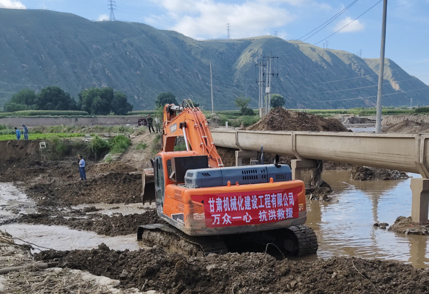 災(zāi)情就是命令,我公司第一時(shí)間啟動(dòng)應(yīng)急響應(yīng)機(jī)制,領(lǐng)導(dǎo)班子迅速部署搶險(xiǎn)工作。駐榆中縣黃河流域宛川河金崖污水處理廠項(xiàng)目部接到指令后,立即集結(jié)人員,配備挖掘機(jī)、抽水泵等專(zhuān)業(yè)設(shè)備緊急趕赴夏官營(yíng),全力開(kāi)展道路搶通、河道疏浚及淤泥清理作業(yè)。